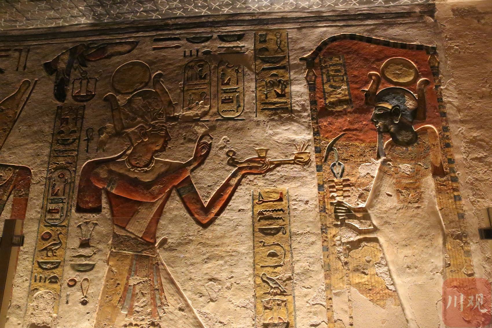 从神庙出发,他走进帝王谷——这片由64座陵墓组成的墓群。在一座墓室中,壁画色彩鲜明,他特意关闭了闪光灯进行拍摄;在另一座墓道深长的墓室里,他记录下精巧的浮雕;还有一座墓室里,他架起三脚架进行长曝光,留存壁画的笔触细节。
