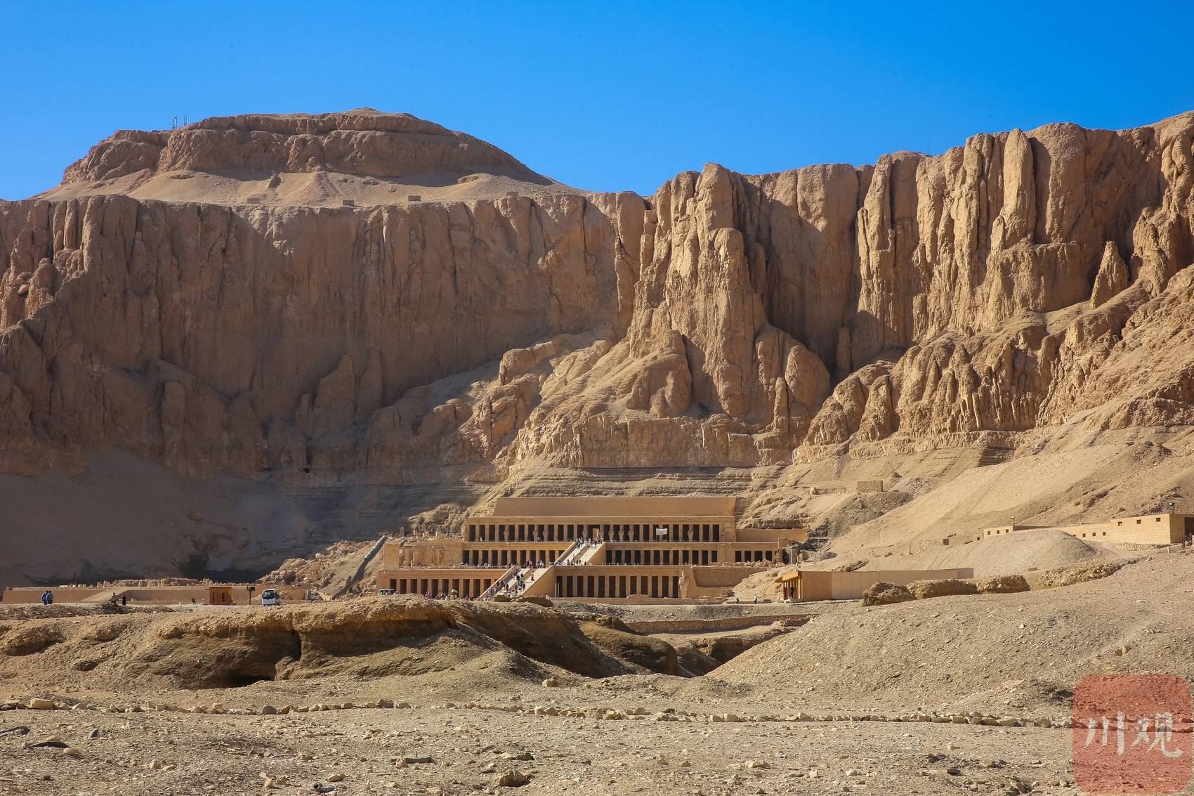 帝王谷中,哈特谢普苏特神庙依山体而建,被荒漠与峭壁环绕 。