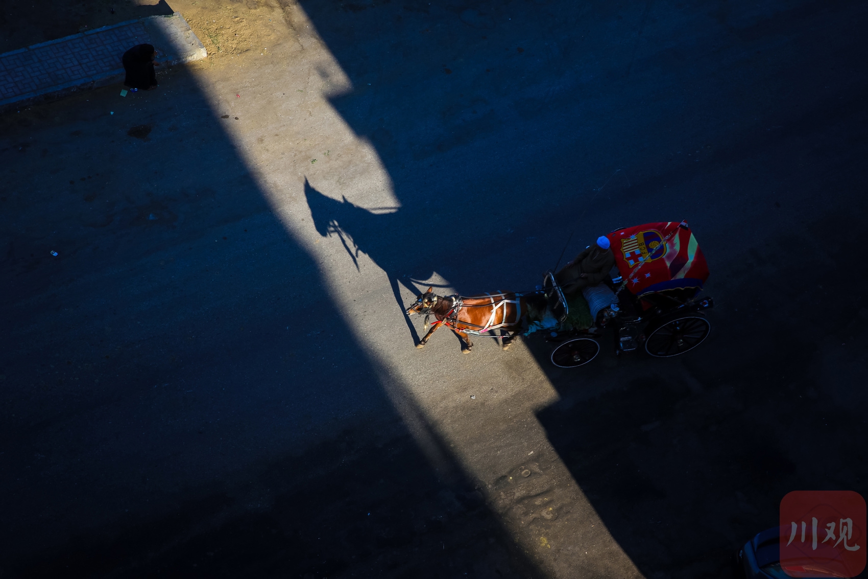 光影交错的路面上,马车缓缓前行。