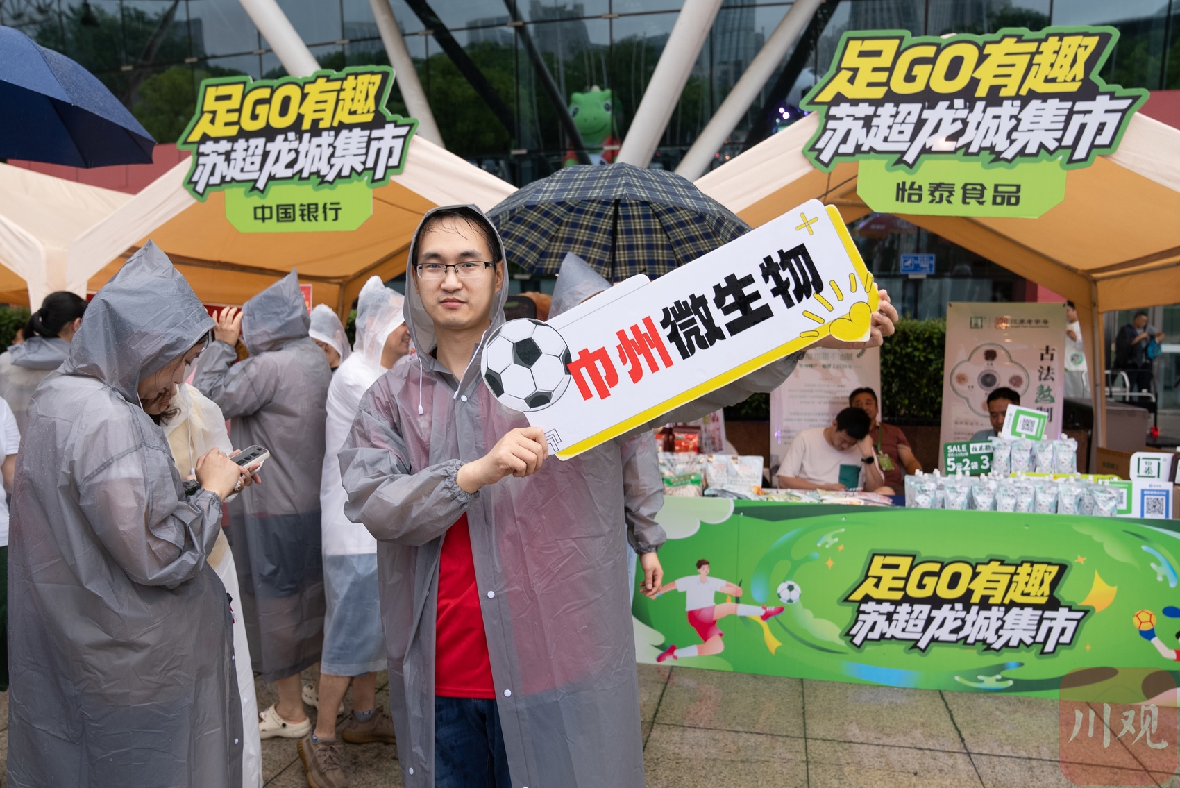 21日对阵南京当晚,虽然下起大雨,赛场内外仍热度不减——场内,20余只仿真恐龙助阵中场表演,一只小恐龙“被比分气晕罢工”;场外,有近百个摊位的苏超龙城集市上,“给十三妹一点进化的时间”“听说赢的城市可以当省会”等标语随处可见。该场比赛单场观众突破36712人,在线观看人数超837万人,均超越此前“苏超”单场纪录。目前,短视频平台上,#苏超、#苏超联赛等话题的播放量已突破110亿次。