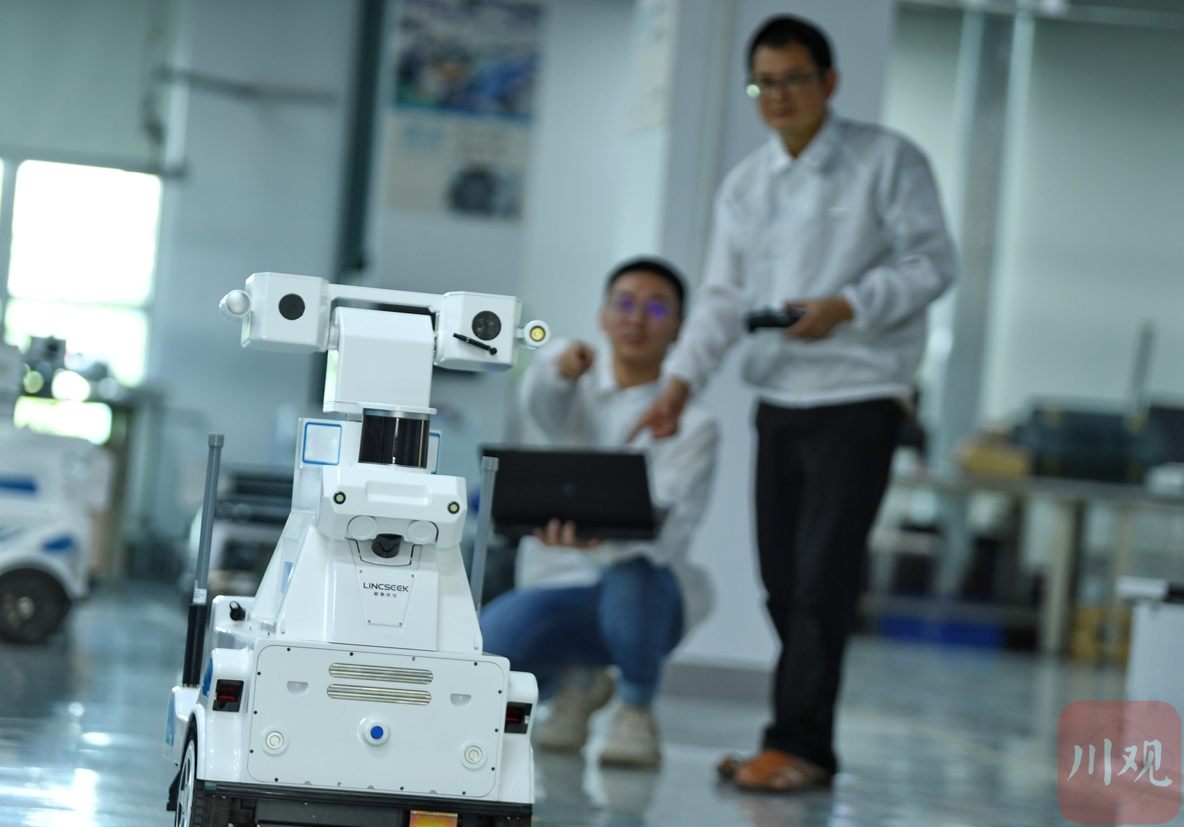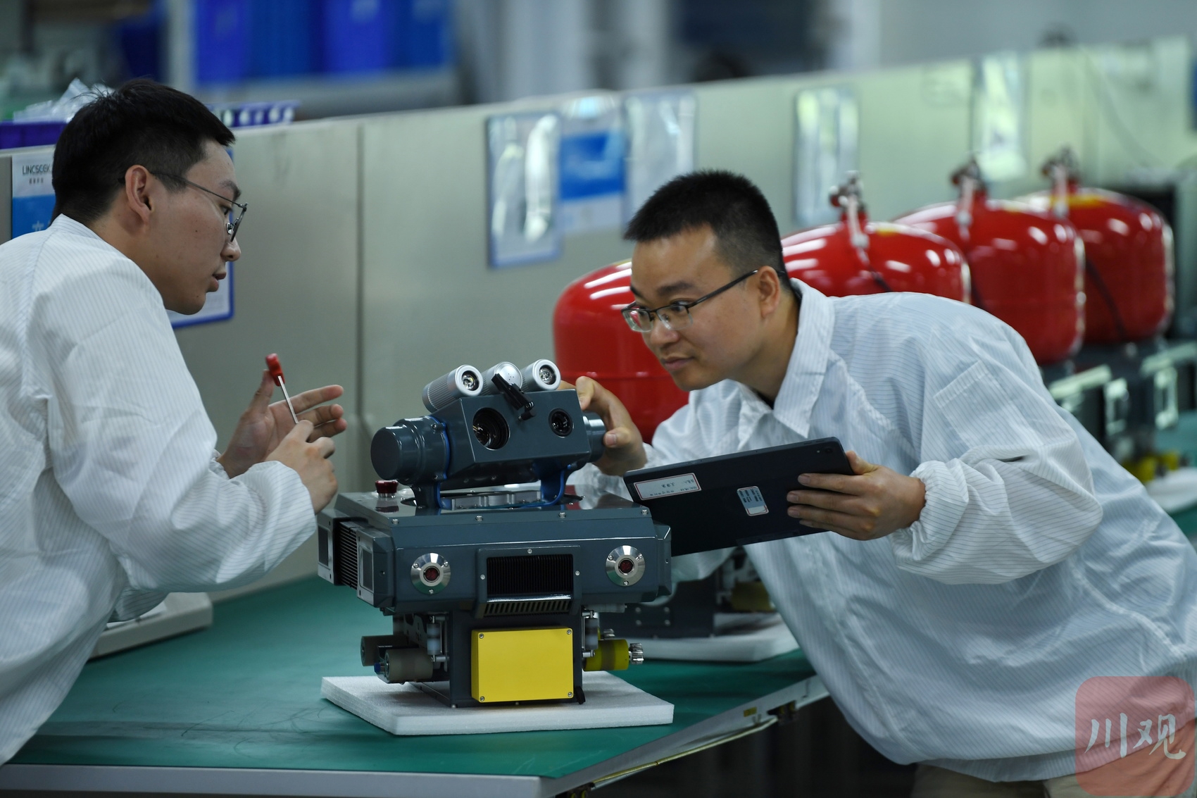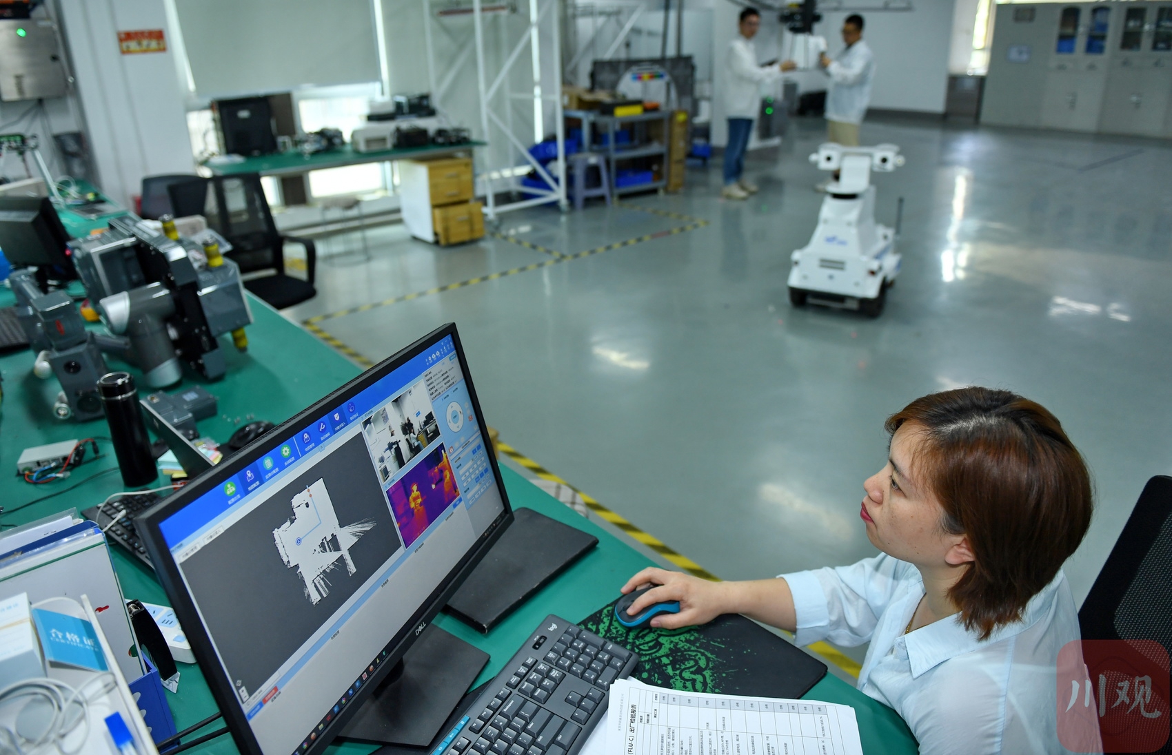 2025年6月25日,成都慧拓自动控制有限公司的科研人员正在测试新型号巡检机器人的“眼睛”。