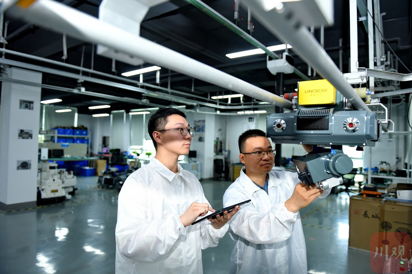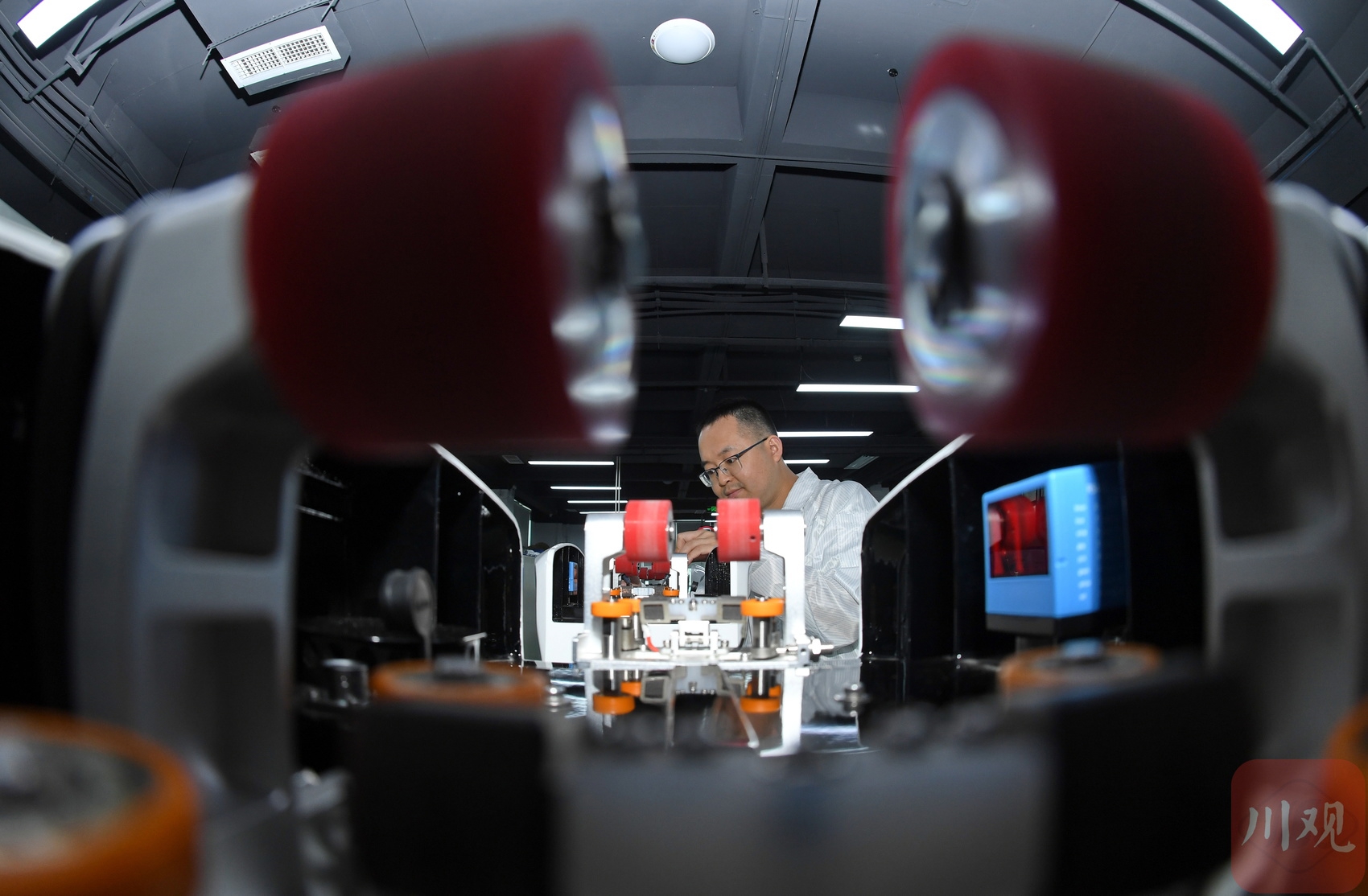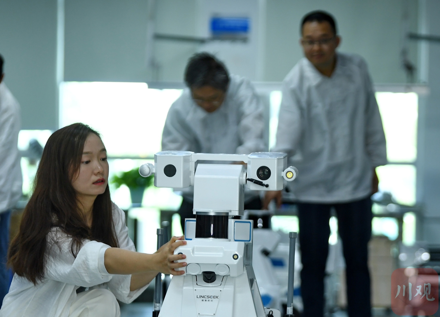 2025年6月25日,成都慧拓自动控制有限公司的科研人员正在测试新型号巡检机器人的“眼睛”。