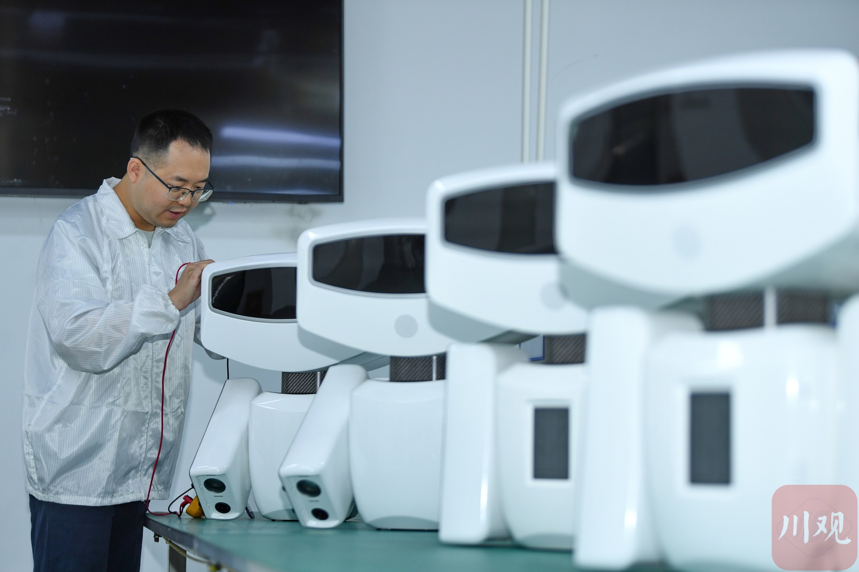 2025年6月25日,成都慧拓自动控制有限公司机器人制造产线能生产多款不同功能的巡检机器人。