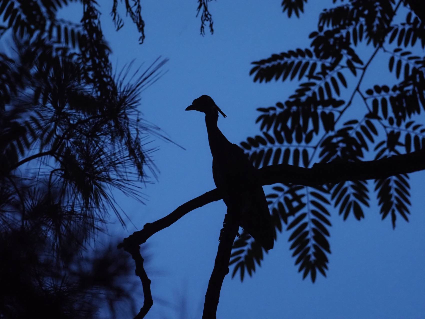 黄昏时分的海南鳽轮廓。自贡市自流井区亦趣自然保育中心供图