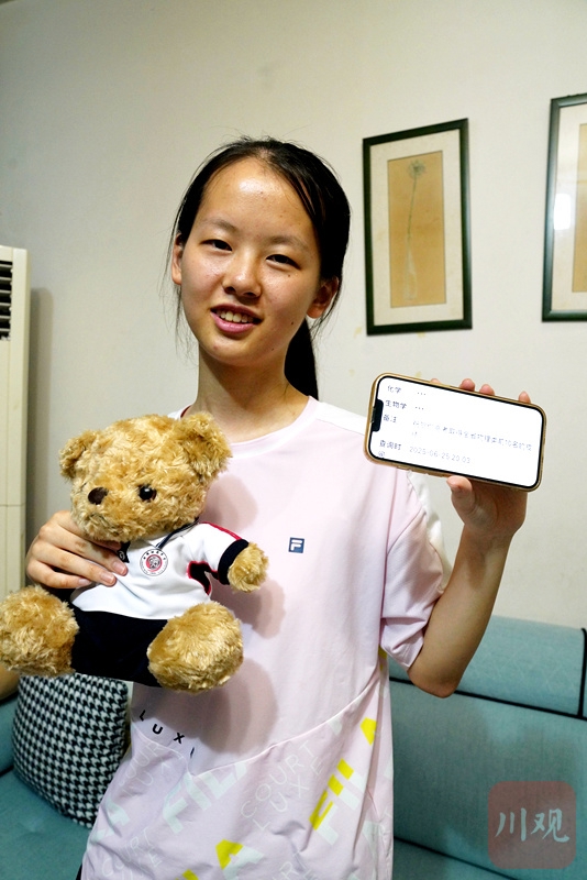 6月25日晚,2025年四川高考成绩“放榜”。四川在线记者获悉,四川省成都树德中学宁夏街校区的钟铠羽同学取得全省物理类前十名的成绩。钟铠羽同学今年高考选择的是物理方向,化学和生物组合。