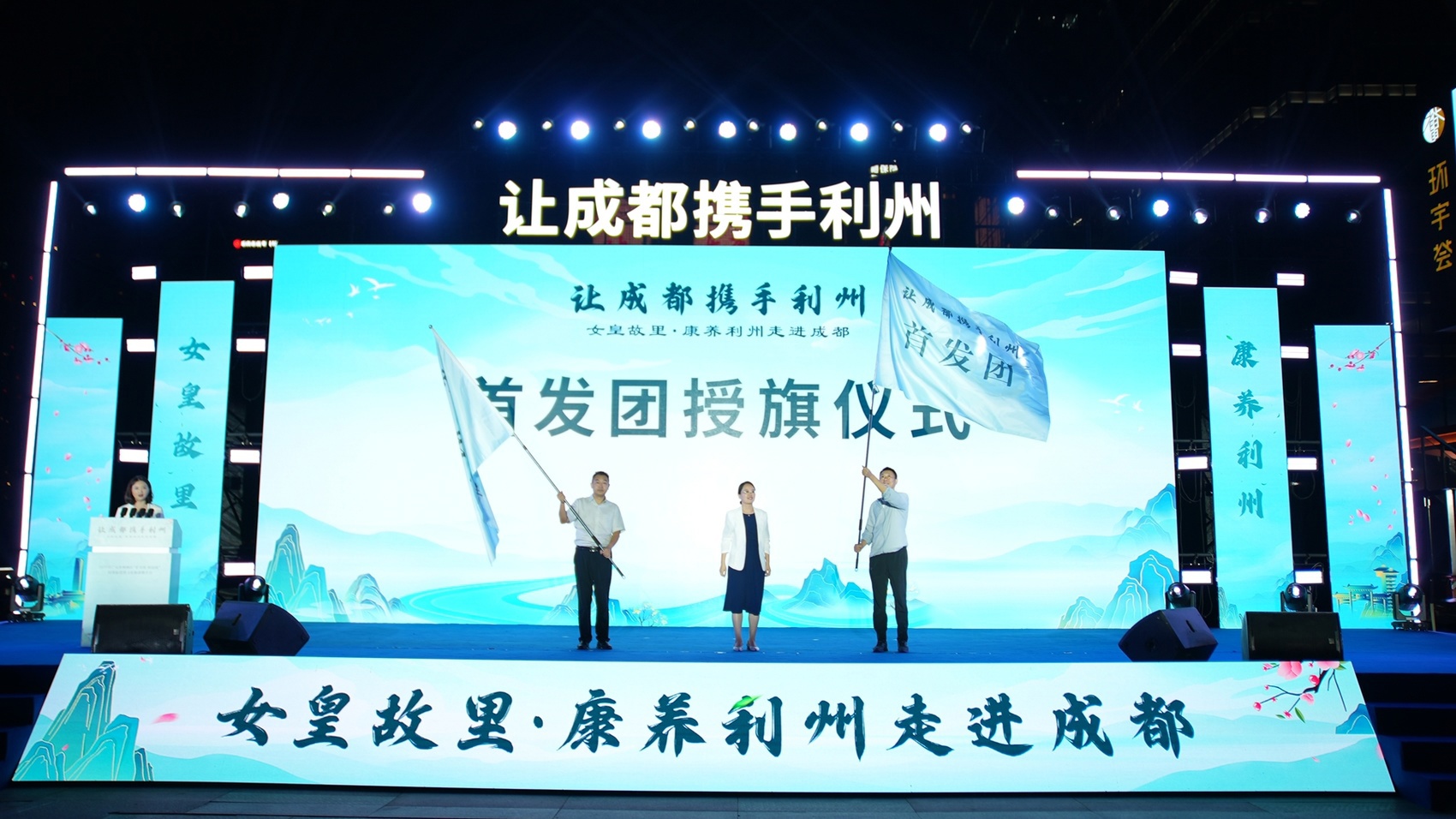 现场,利州区委常委、宣传部部长,区总工会主席戴亚男为“让成都携手利州”首发团授旗,标志着两地文旅合作迈入新阶段。