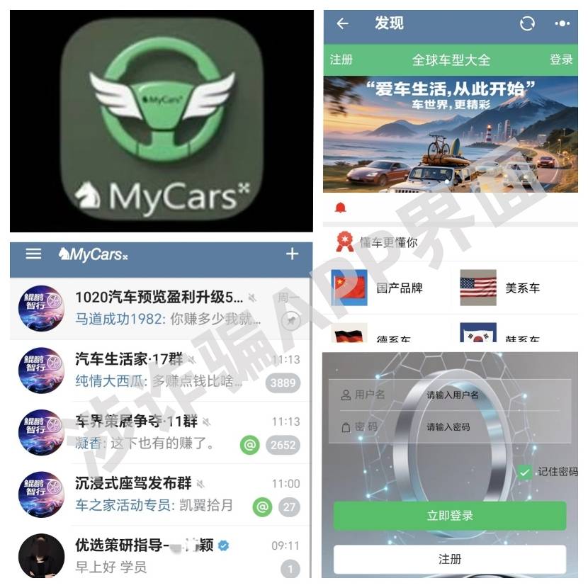 今年6月初,张先生因自己的电动汽车钥匙需升级,通过抖音下单后进行邮寄,紧接着被诱导关注虚假微信公众号“张七琦”,又下载了一款名叫“MYCars”的App,参与“新能源车视频领奖励”活动。