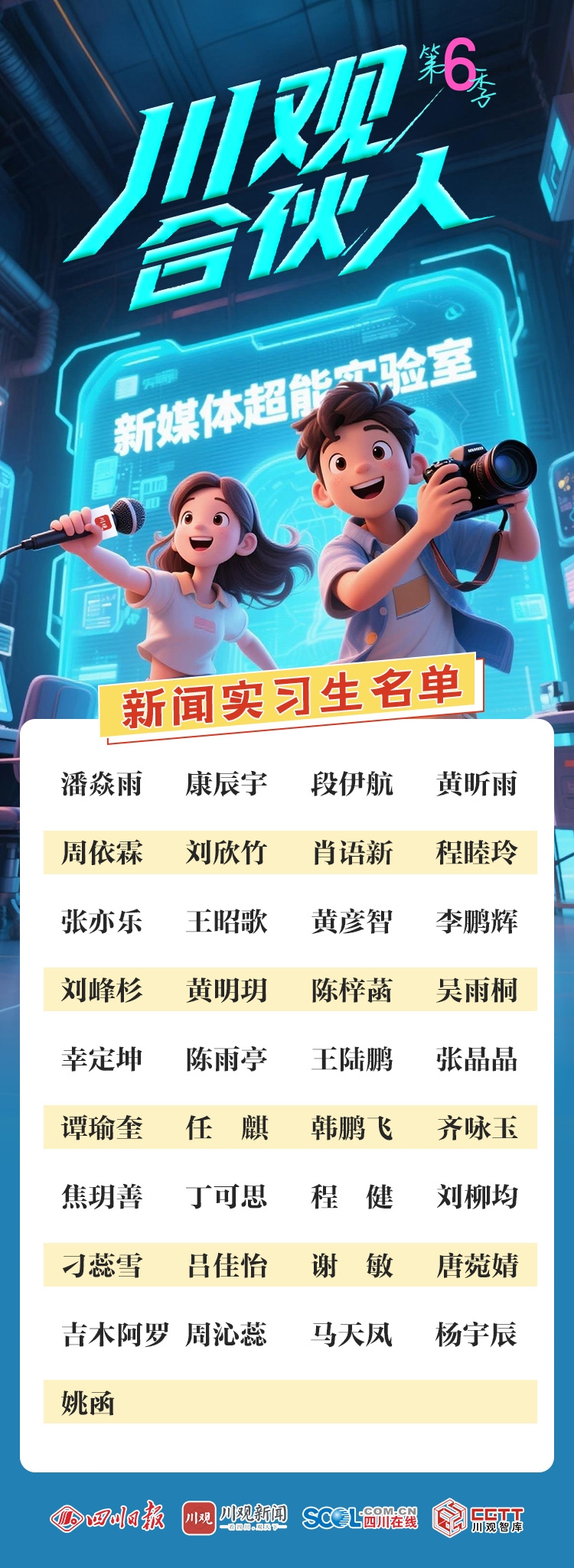 入选的实习生将在接下来的实习中,深入新闻一线,发挥自身专业特长,创作出更多有深度、有温度的新闻作品。期待他们在 “川观合伙人” 的舞台上,绽放青春光彩,为新闻事业注入新的活力。