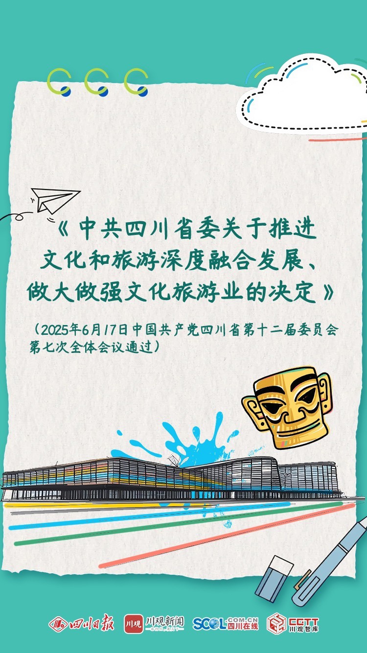 中共四川省委十二届七次全会审议通过的《中共四川省委关于推进文化和旅游深度融合发展、做大做强文化旅游业的决定》发布。