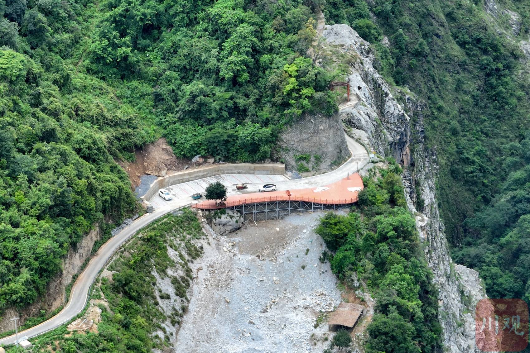 6月26日,航拍阿布洛哈村进村公路上第二个隧道-思源隧道入口外的观景台。