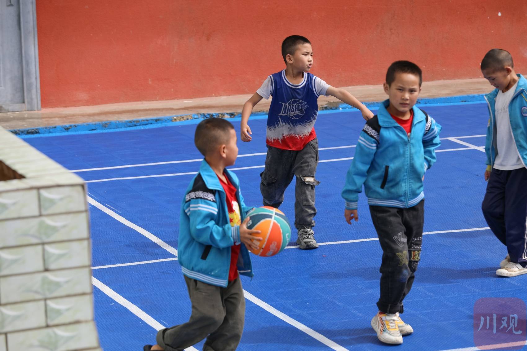6月26日,阿布洛哈村小学的学生在操场打篮球。凉山观察 李思行 摄
