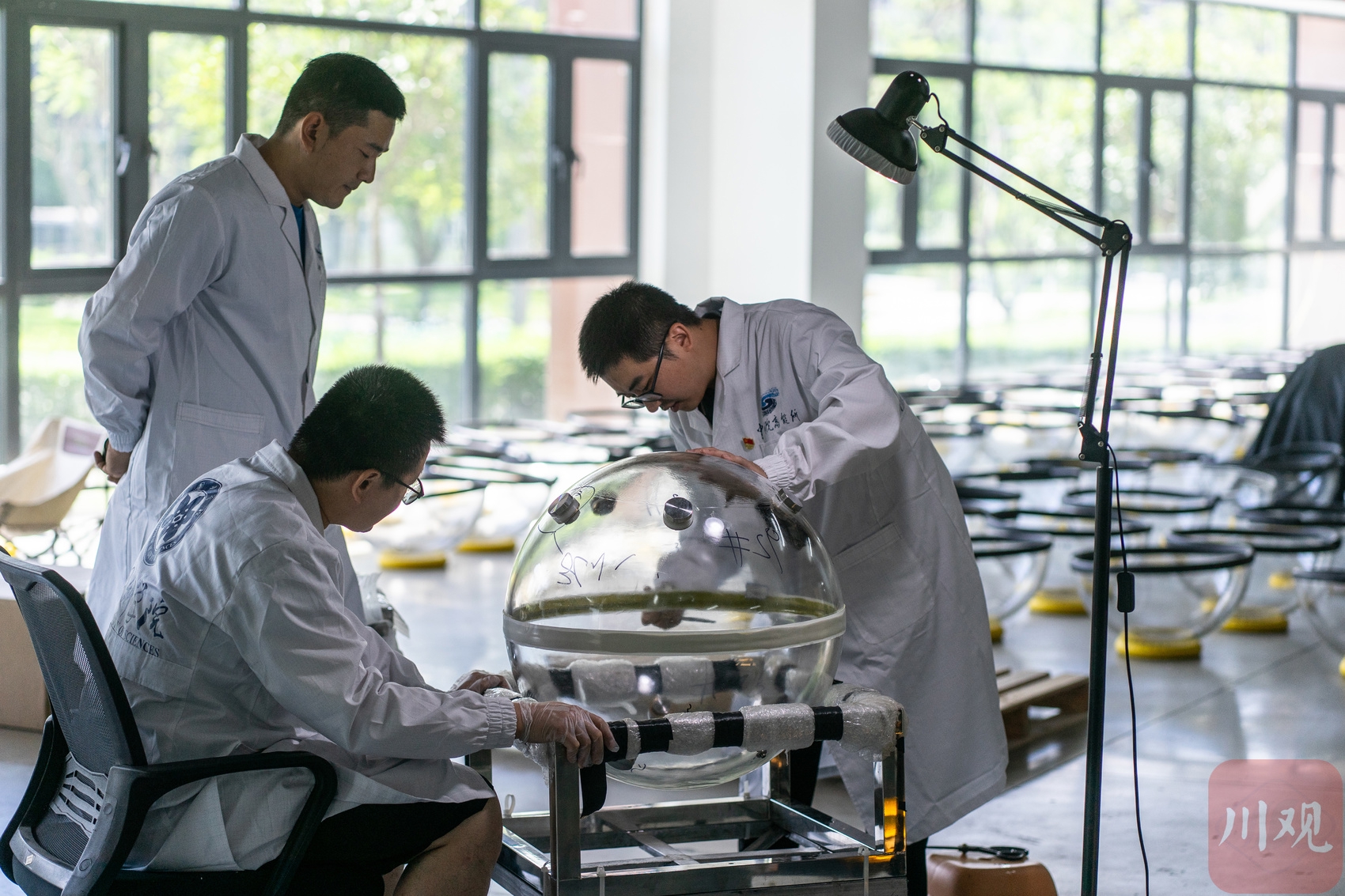 6月30日,四川天府新区宇宙线研究中心,中国科学院高能物理研究所天体中心高级工程师李凯与助理研究员游晓浩正专注于新一代中微子探测器的封装测试。作为党员科研骨干,他们与团队历时两年持续攻关,成功研发出拥有完全自主知识产权的新型探测器,分别于2024年3月和2025年3月在俄罗斯贝加尔湖实施了2串共计36个探测器单元样机的水下布放,完成实地论证。