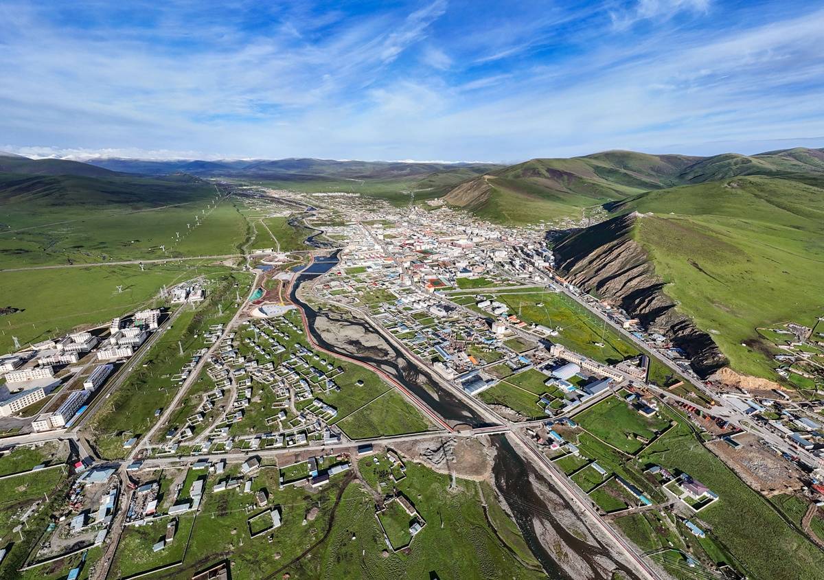 海拔超过4200米的石渠县县城全景。新华社记者 王曦 摄