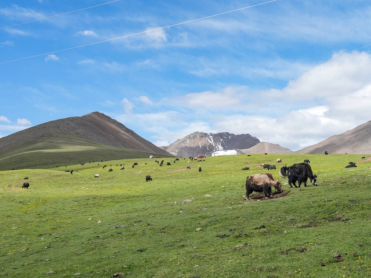 以山河为界,这片约6平方公里的高寒草地正是属于菊母村的一处夏牧场,有七八户牧民在此放牧。