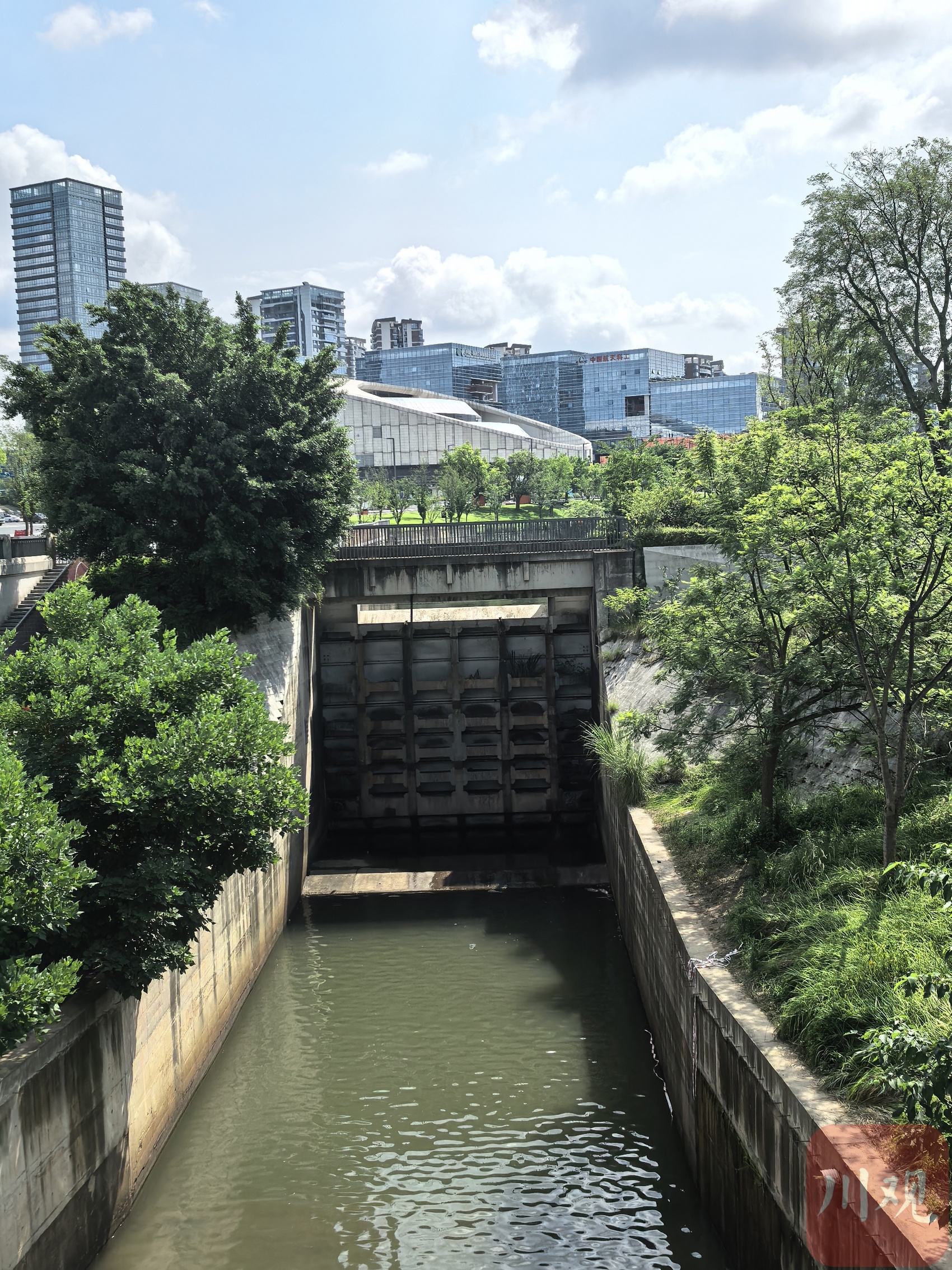 顺着工作人员指引,记者找到兴隆湖泄洪闸所在位置,目前已处于关闭状态。闸门外的鹿溪河,目前水位较低。河堤一侧,有“泄洪水道 严禁下水”的标识标牌。