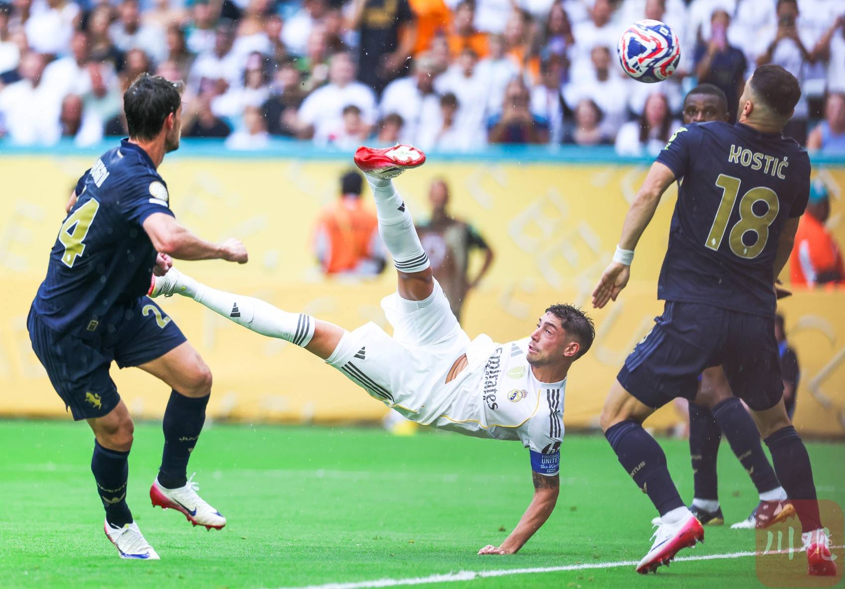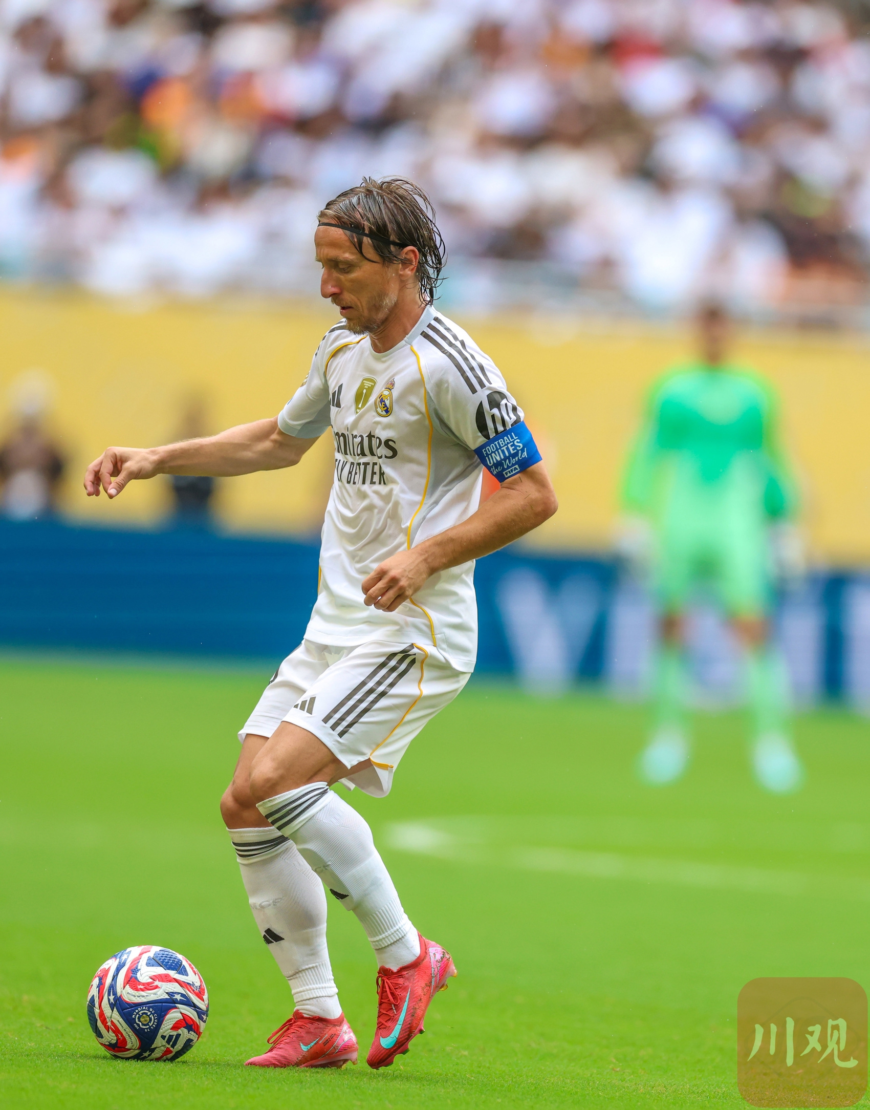 下半时,皇家马德里队莫德里奇出场换下居勒尔,硬石体育场的皇马球迷打出膜拜手势,致敬39岁的魔笛,世俱杯踢完之后,魔笛将正式告别皇马。