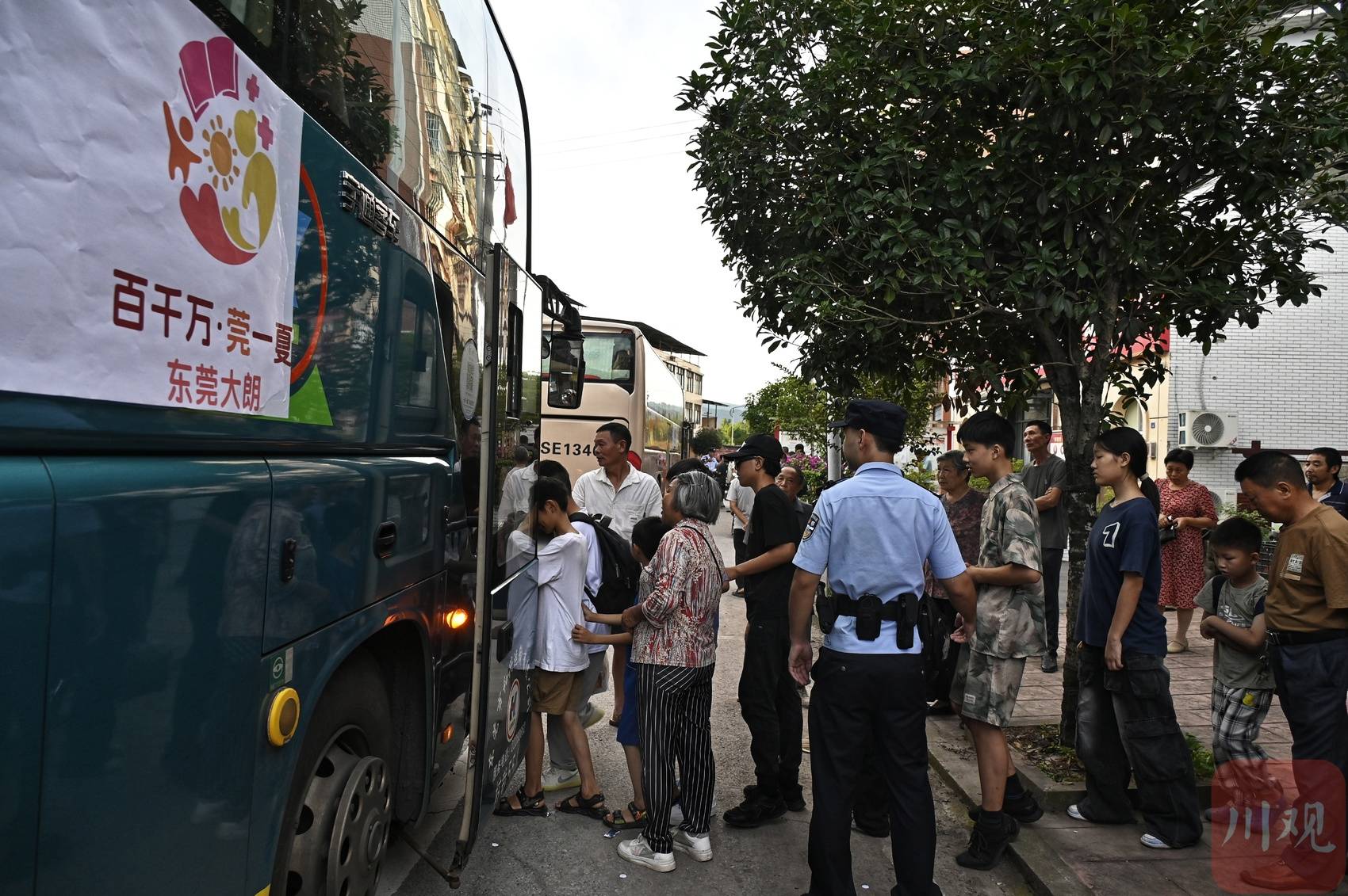广兴镇上孩子们排队上车。