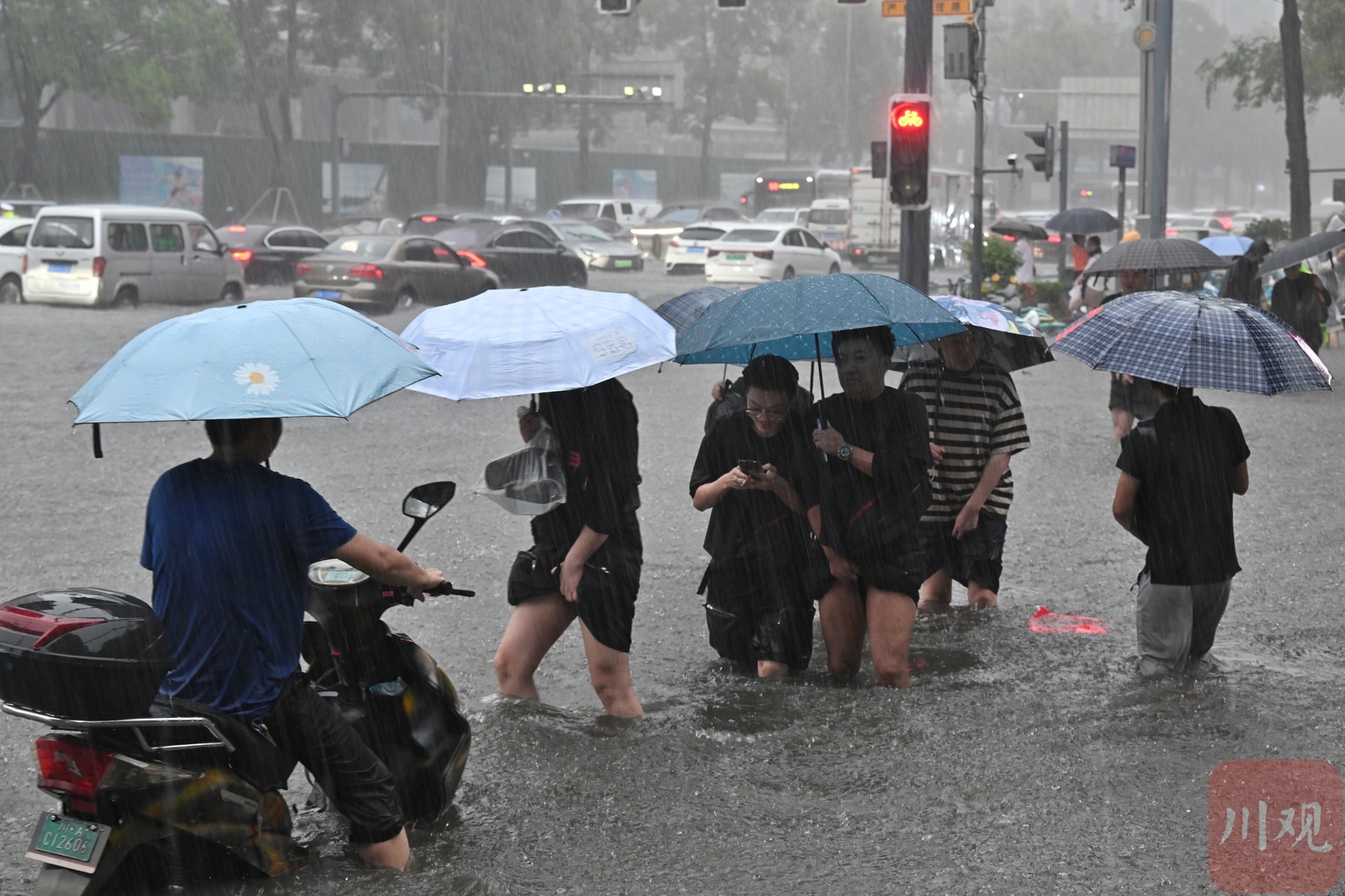 7月3日下午,成都市区突降暴雨,导致蜀都大道东风大桥至水碾河、水碾河至双桥子路段双向主干道出现积水。