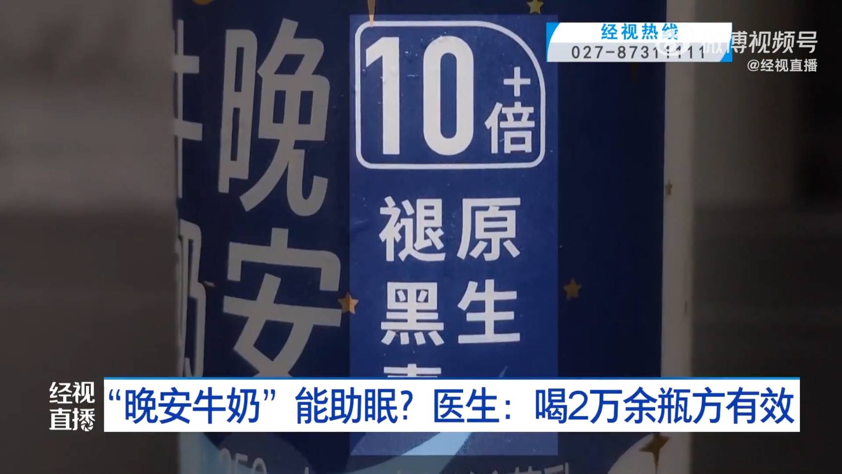 “晚安牛奶”真的能助眠吗?武汉市第五医院神经内科主任医师胡仁琳表示,人体每天需要的褪黑素,大约为0.5毫克到3毫克,晚安牛奶里含的褪黑素含量只有12500pg每瓶,喝到24000瓶才能达到人体所需含量。有人喝后感觉睡眠改善,或许是因为牛奶本身具有助眠作用,再加上心理安慰。委托商的工作人员也表示,“晚安牛奶”只是一个名称,并不意味着该牛奶喝完后一定有助眠效果。