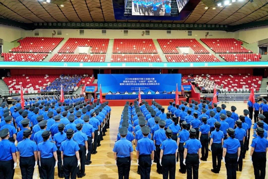 7月6日,2025年成都百万职工技能大赛城管执法“大练兵”成果汇报暨第12届世界运动会城管执法保障动员会在蓉举行,吹响第12届世界运动会城管执法保障工作号角。