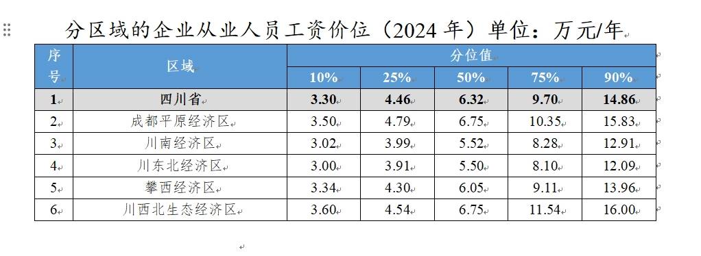 四川整体工资报酬如何?从公布情况看,全省整体工资价位中位数为6.32万元/年,其中成都平原经济区和川西北生态经济区整体工资价位中位数均为6.75万元/年,紧随其后的依次为攀西经济区,川南经济区,川东北经济区。