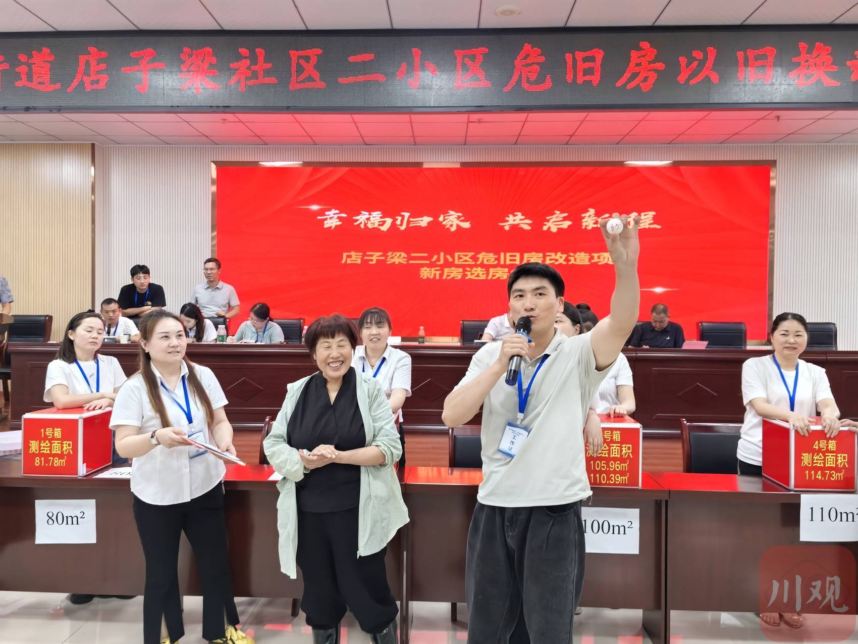 当天,三里坪街道办举行店子梁二小区危旧房“以旧换新”新房选房大会。该小区147户居民曾经破败的危旧房被推倒并原址重建,变为2栋电梯住宅楼,即将竣工交付。这是达州市首个危旧房原址重建小区。