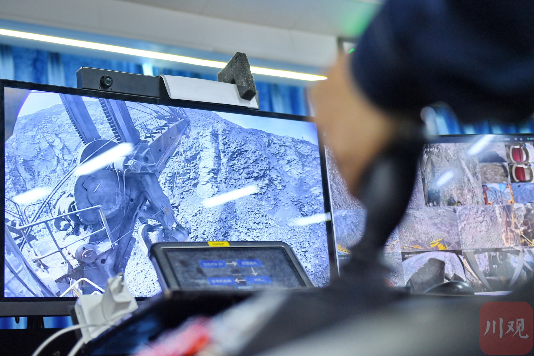 位于四川省攀枝花的攀钢集团矿业有限公司朱兰铁矿分公司5G操控大厅里,矿工们坐在先进的智控座舱中,通过5G网络远程操控着矿山机械采矿。