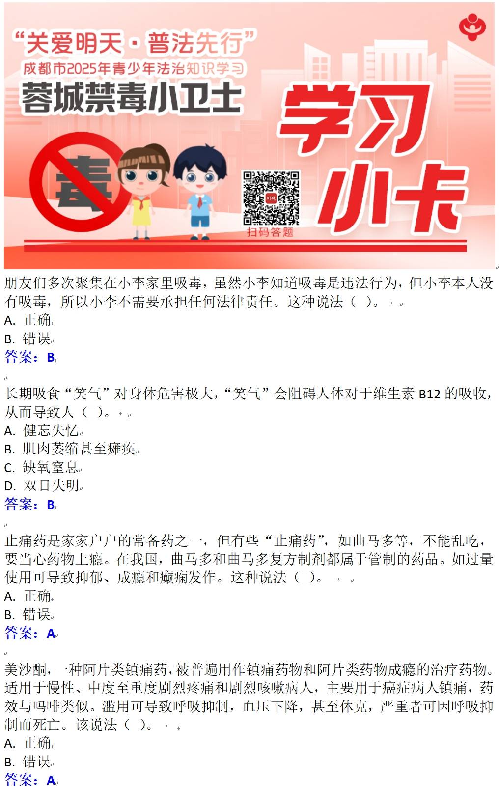 @禁毒小卫士,“每日学习卡”上线!助你轻松闯关,坚持到底!
