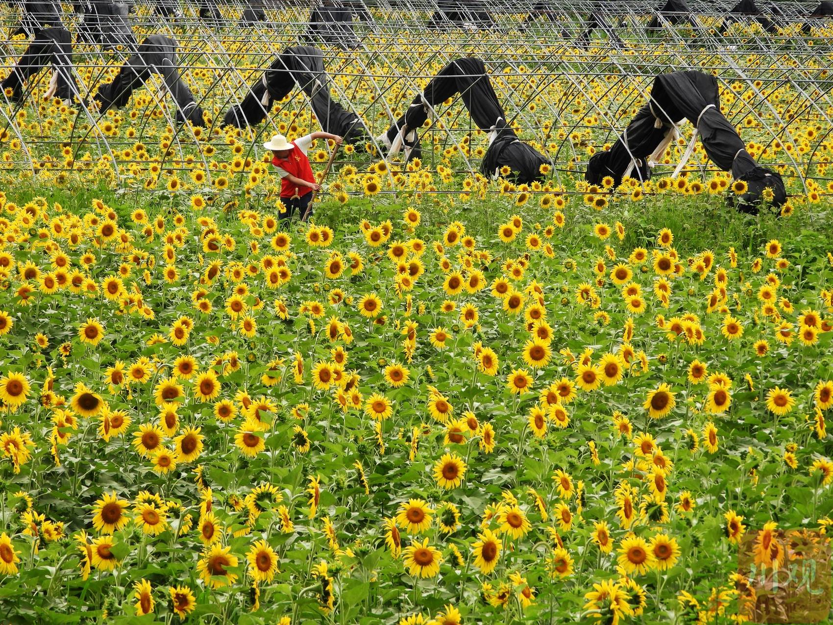 达州市达川区龙会乡张家山村种植基地,村民进行向日葵花田管护。邓良奎/摄