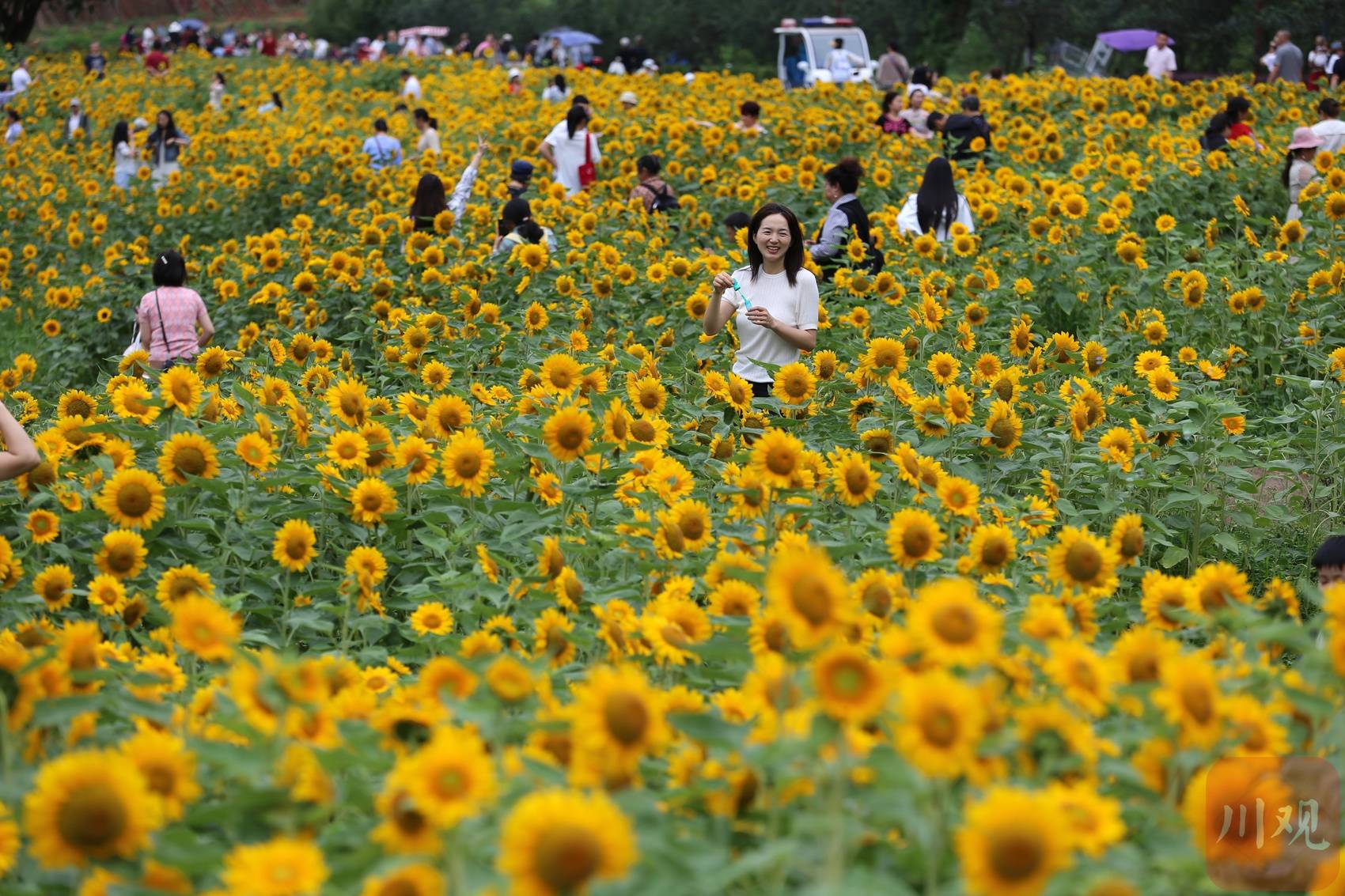 成都新都区毗河绿道・音乐文创公园的向日葵绚烂绽放。包瑞雪/摄