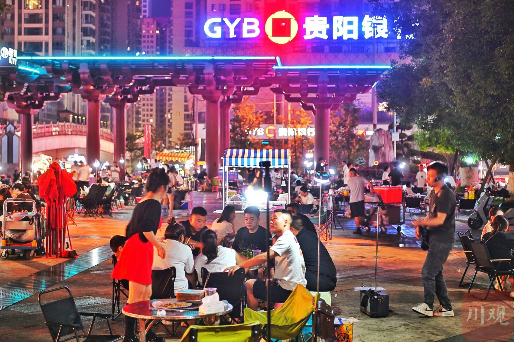 7月13日深夜十点,贵州遵义仁怀市的端午路口迎来一天中最热闹的时刻。几十张烧烤桌满满当当,每一张都围坐着尽兴的食客。升腾的烟雾裹挟着烤肉浓烈的焦香,与碰杯声交织在一起,在夏夜空气中弥漫。