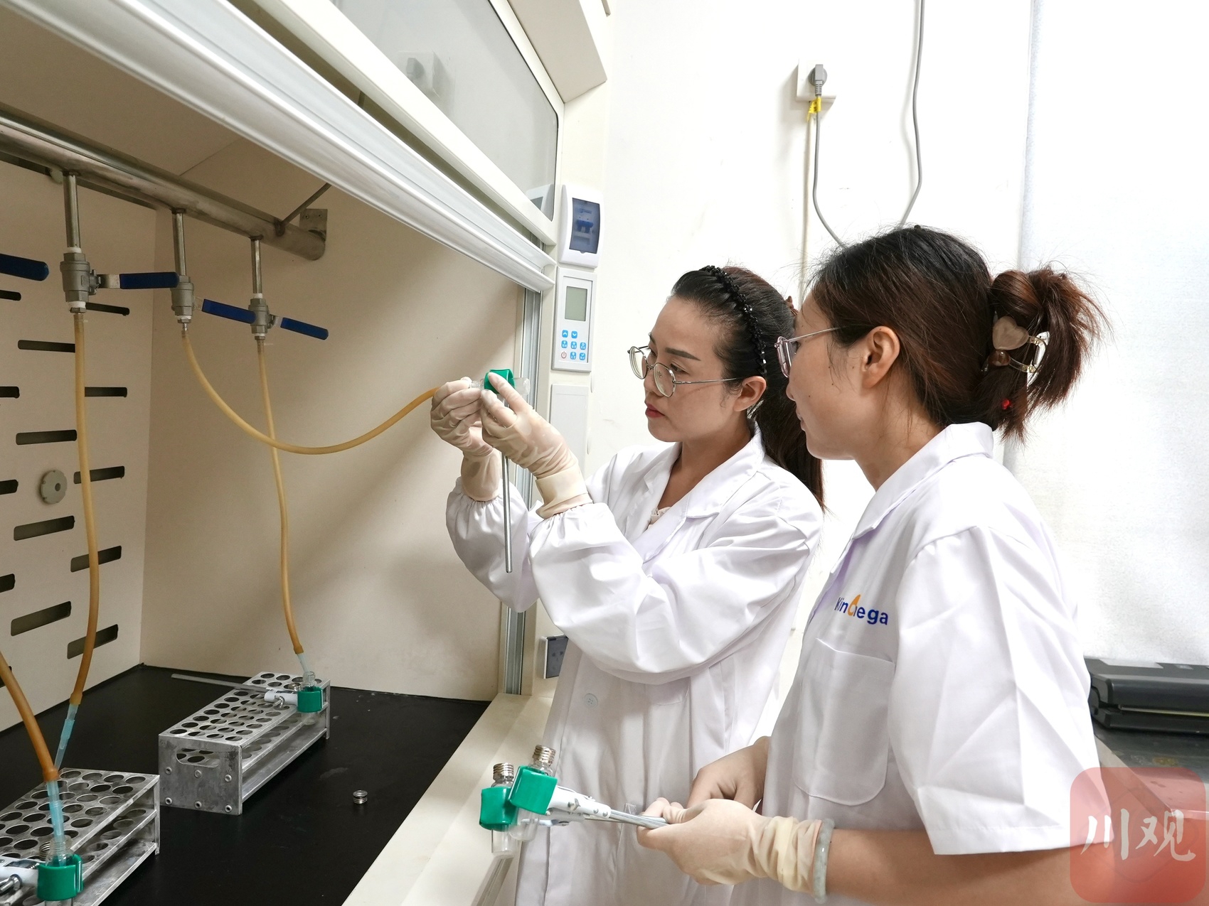 工作人员检测鱼油含量。