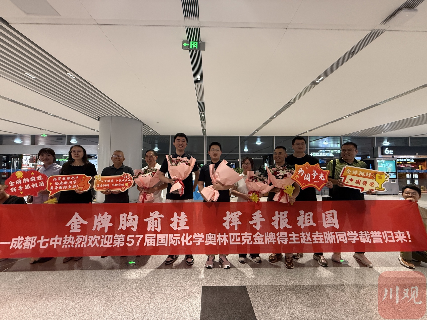 “此次能够为国争光,非常高兴!”7月14日晚8点半左右,成都双流国际机场T1航站楼到达层,成都七中林荫校区高2022级9班学生赵垚晰载誉而归。