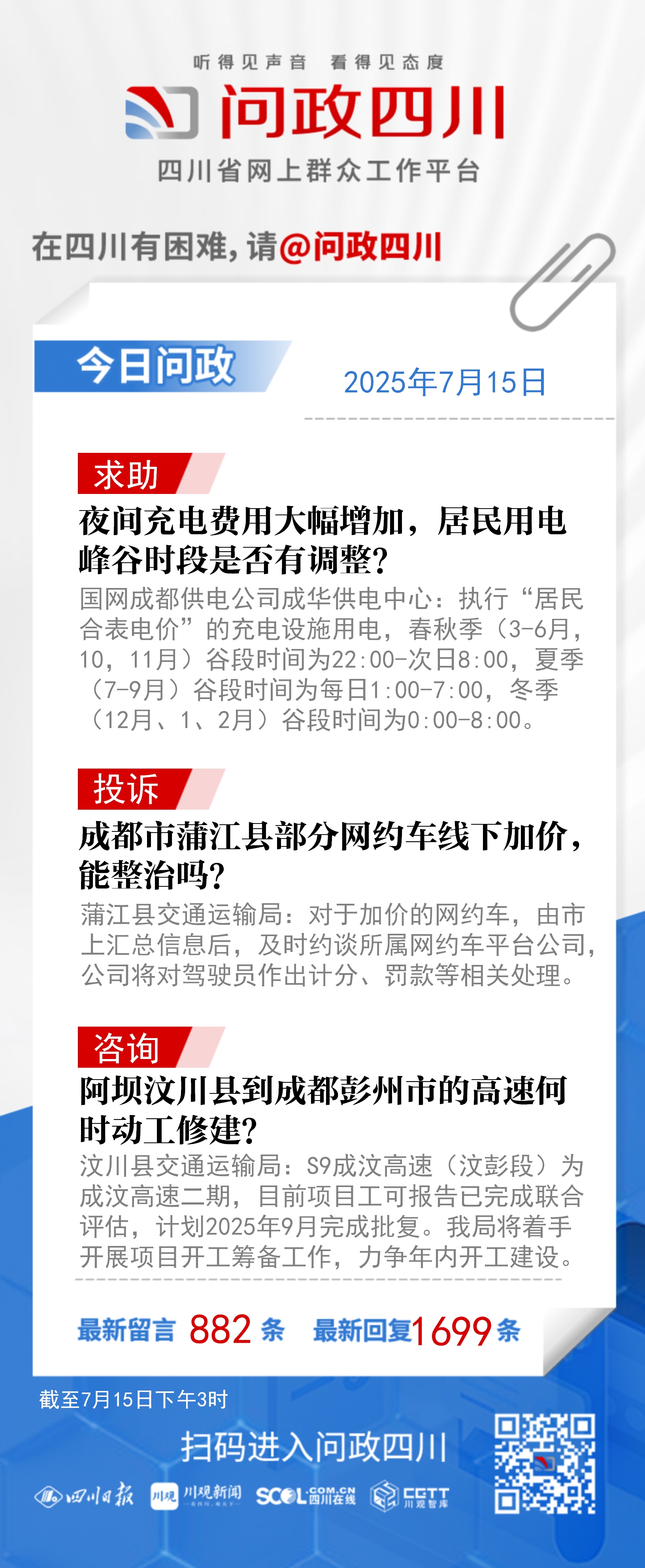 在四川有困难,找问政四川。如果您在四川遇到了操心事、烦心事、揪心事,请登录“四川省网上群众工作平台—问政四川”或拨打问政四川热线(028-96001)留言反映、求助或建议。我们将充分发挥平台的互动联系作用及舆论监督功能,第一时间传递民声,推动问题得以及时解决——听得见声音,看得见态度。