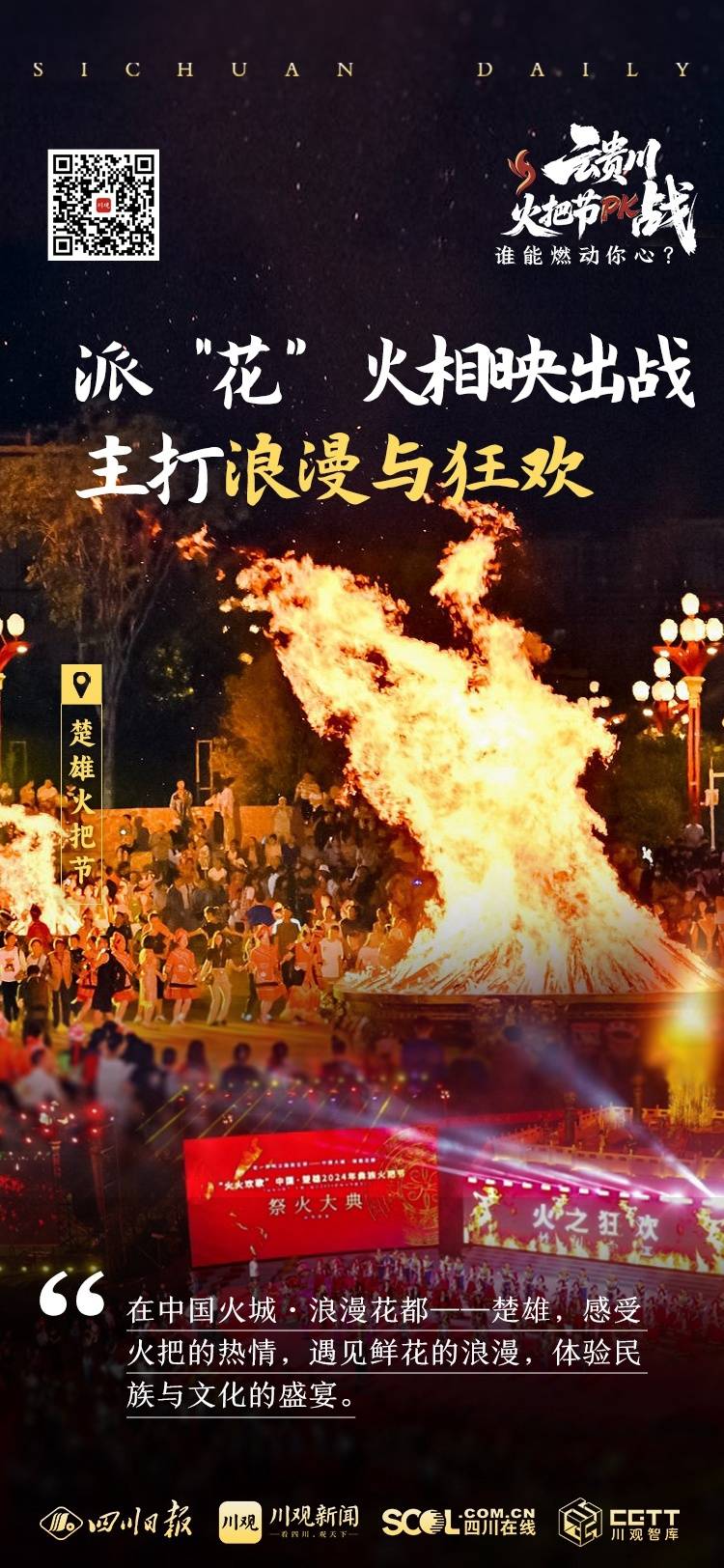 云南派出的是楚雄火把节,中国火城、火火欢歌。
