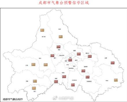 成都市气象台2025年07月16日10时00分更新高温橙色预警信号为高温红色预警信号:预计成都市武侯区、锦江区、青羊区、成华区、金牛区、高新南区、高新西区和青白江区的所有镇(街道)今日最高气温将升至37℃以上,东部新区的大部分镇(街道)今日最高气温将升至40℃以上,高温时段主要出现在12-19时。预计高温天气将持续至18日,请注意防范高温带来的不利影响。目前我市彭州、都江堰、崇州、大邑、邛崃、蒲江和简阳发布高温橙色预警信号,其余区(市)县发布高温红色预警信号。