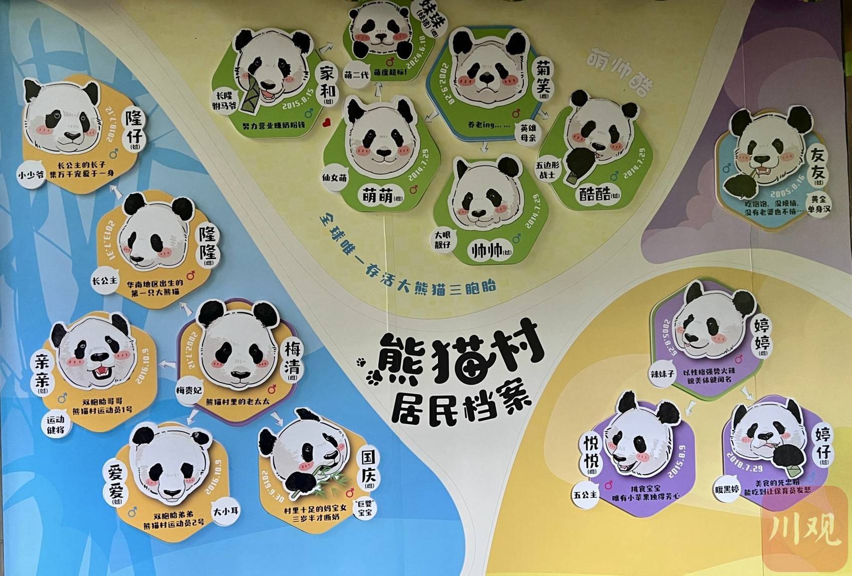 长隆野生动物世界展示墙,呈现2014年全球唯一存活大熊猫三胞胎 “萌帅酷” 诞生的珍贵记录 。