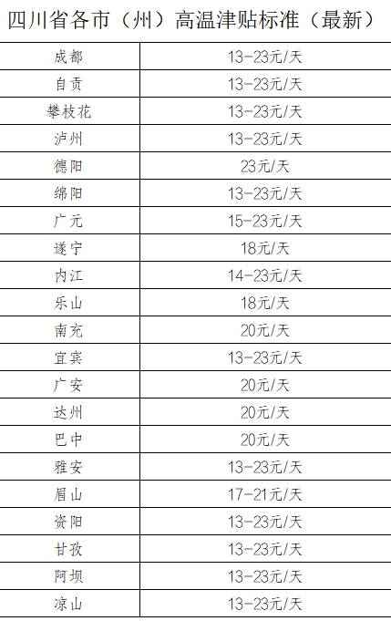 四川21个市(州)目前执行的高温津贴标准为——