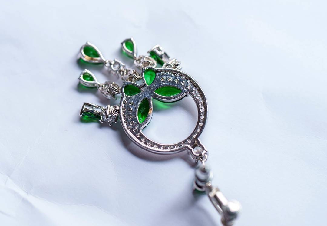 刘芳芳回忆,2016年前后,她去深圳,在水贝珠宝市场逛街时,买下了这套饰品。这套饰品是三件套,一对耳环和一条项链。据司玲霞于2024年8月6日用手机拍摄的图片证实,这套饰品确系三件套。