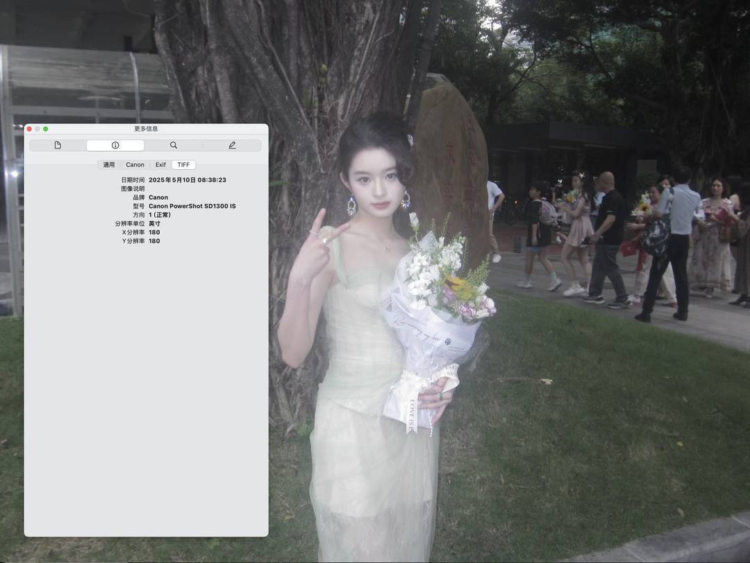 司玲霞向记者提供的争议“耳饰”照片的原文件信息显示,该照片由佳能(Canon PowerShot SD1300 IS)CCD相机于2025年5月10日拍摄,对于照片中被网友认为是钻石首饰特有的“火彩”闪光,持有钻石检验员证书的司玲霞解释道,这是相机闪光灯导致的效果。