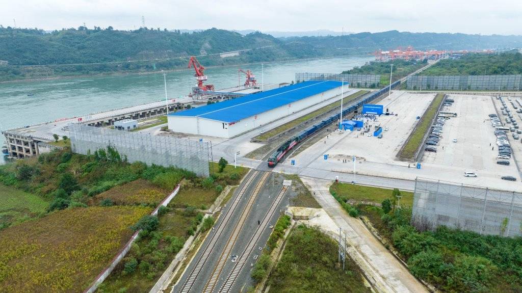 2024年11月19日,挂载了四川时代新能源科技有限公司动力锂电池集装箱的列车在四川宜宾港出发,驶向上海。罗顺 摄