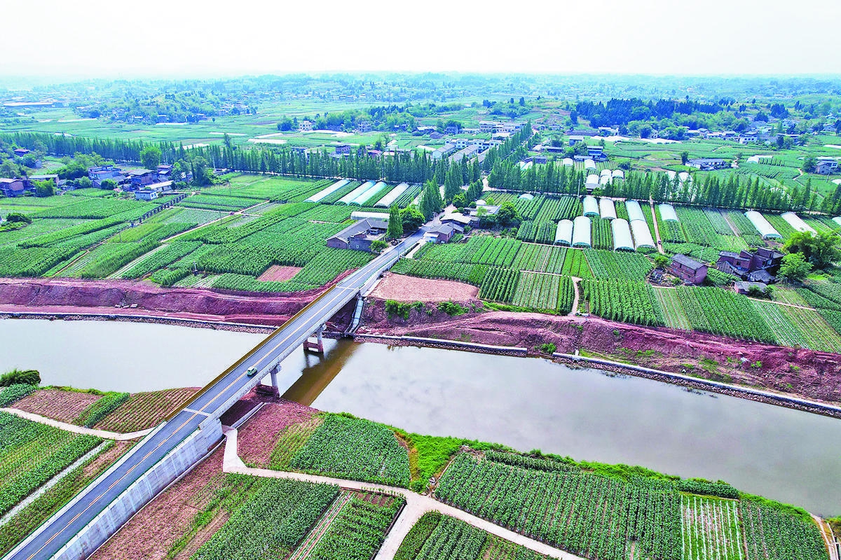 7月15日,内江市东兴区石子镇旱地坝村的村民李有田,骑着满载蔬菜的三轮车,通过旱地坝大桥到重庆市荣昌区吴家镇售卖。他表示:“有了这个大桥,去镇里卖菜能省半个多钟头。”