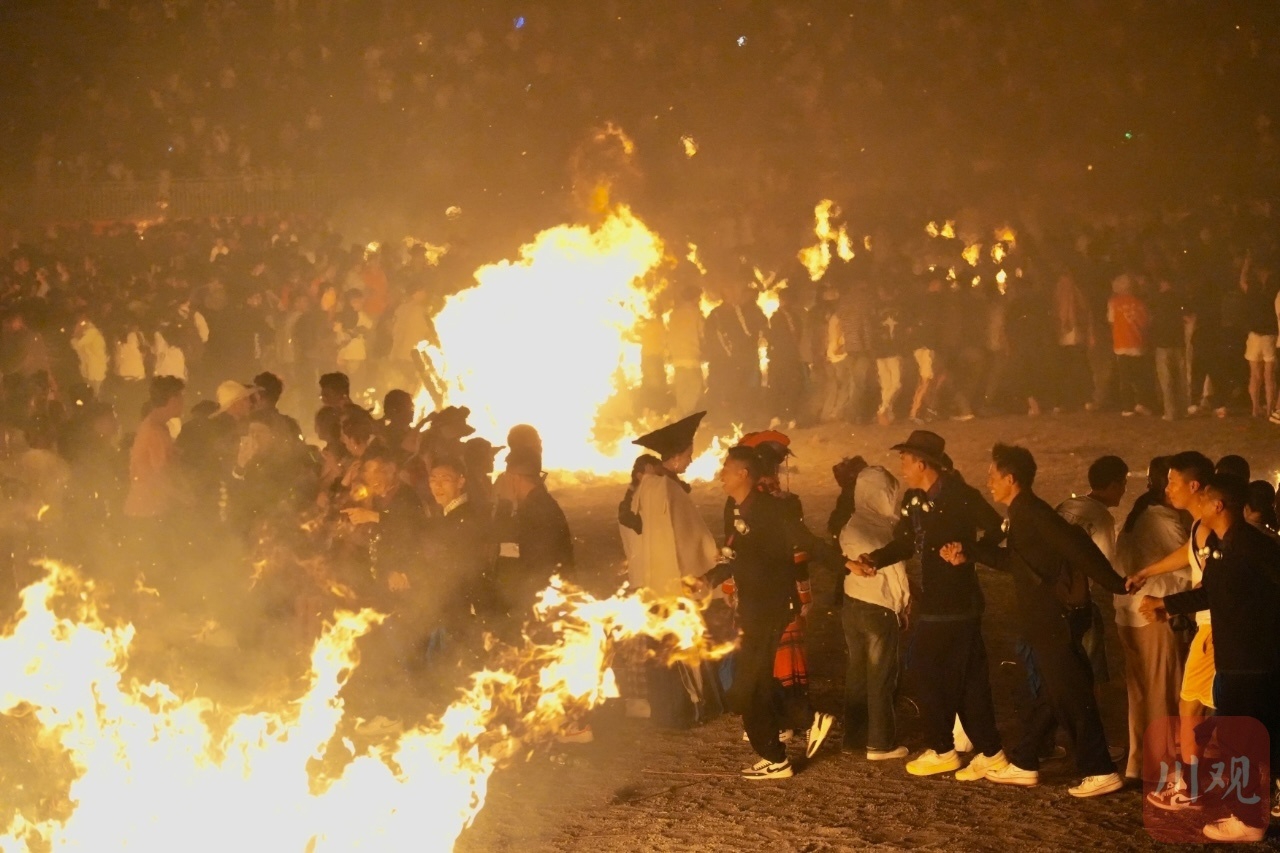 当晚,四面八方赶来的市民和游客自发前往火把广场。20时30分,一个个火把、一堆堆篝火被点燃,大家互相点燃火把,挥舞手臂,把祝福传递开来,把欢乐送给对方。当晚的普格火把广场,星河璀璨,火把燃情。