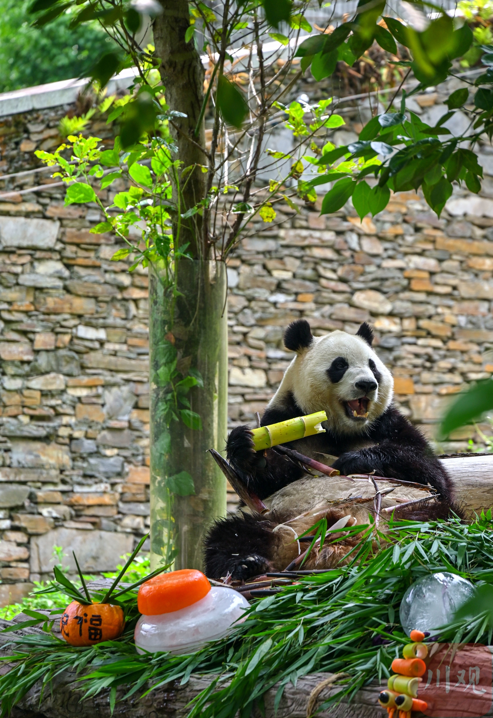 7月17日,中国大熊猫保护研究中心主办的“绿水青山间的新生”2025大熊猫生日季丰容活动在卧龙神树坪基地启动,为近期过生日的大熊猫们集体庆祝,包括了“福宝”等顶流大熊猫。