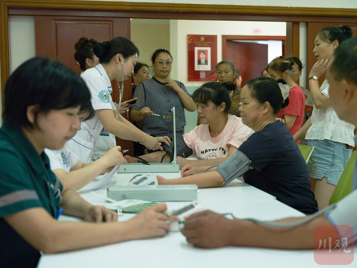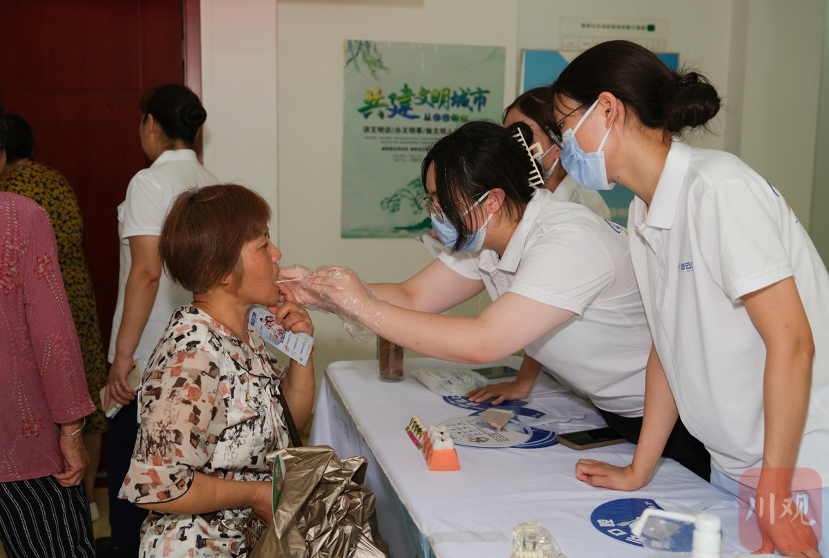 会议室外的走廊上,“关爱健康”主题的义诊活动区域熙熙攘攘,有量血压、看口腔等服务。“周老,你的血压略微偏高,要低盐饮食,适度运动。”量血压医生尹彬结合实际情况,向68岁的周正云提出建议。