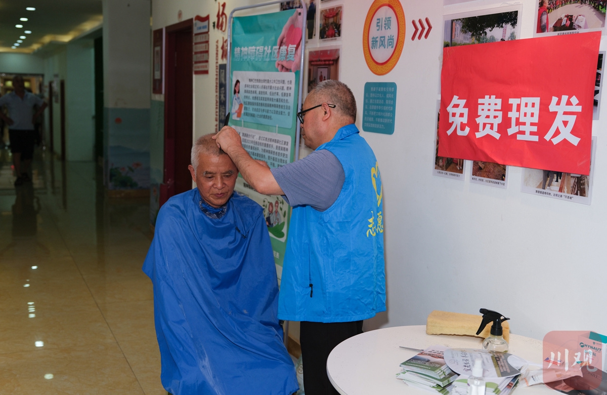 在享受了义诊、义剪服务后,老人们在社区活动中心吹着空调聊天。“社区环境好,给我们老年人提供了活动场所,我和老伴儿经常来”“我们经常来这里写毛笔字,相关用品都是社区免费提供的”……不少居民主动分享在家门口的幸福生活。