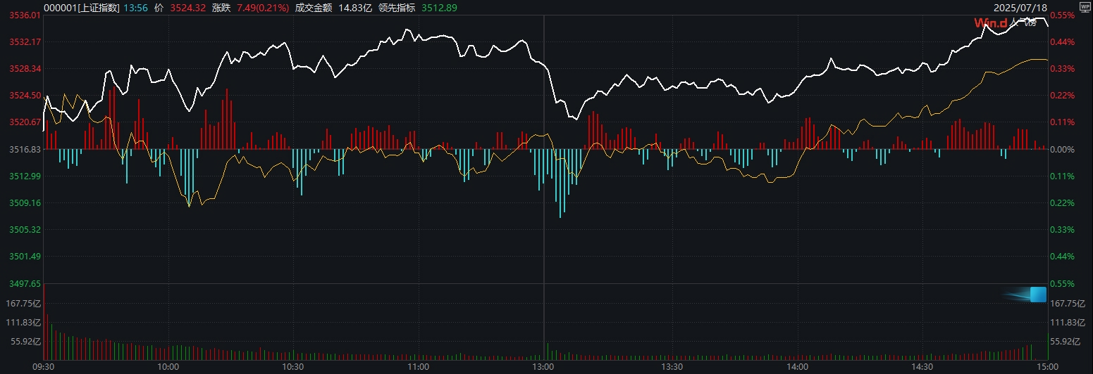 7月18日,A股延续强势回暖态势,沪指一举创下年内新高,三大指数集体飘红,市场赚钱效应持续扩散。截至收盘,沪指上涨0.50%,报3534.48点;深成指上涨0.37%,报10913.84点;创业板指上涨0.34%,报2277.15点;北证50指数小幅调整0.67%。全市场成交额达15933亿元,较前一交易日放量330亿元,连续三日站稳1.5万亿元关口,场外资金入场积极性显著提升,个股涨跌互现,超2600只个股上涨。