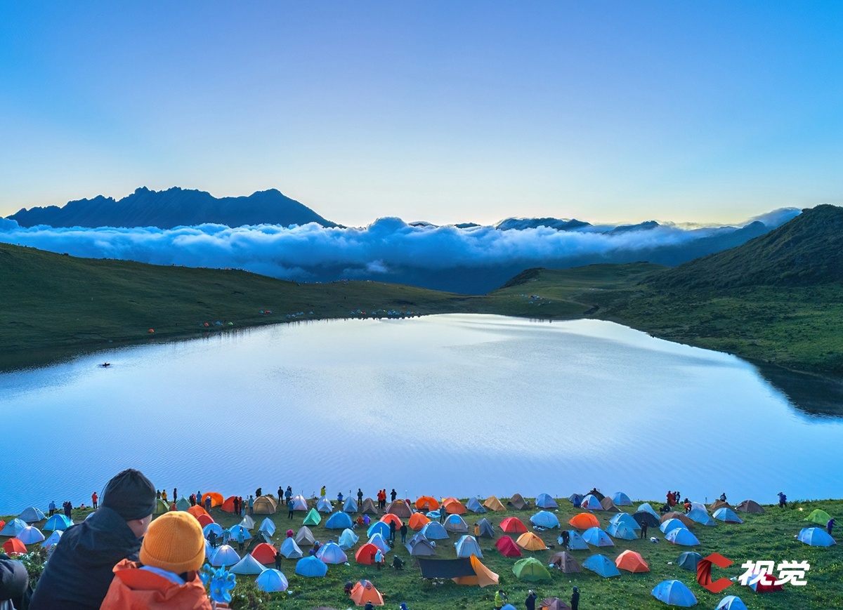 7月13日,阿坝州茂县九顶山黑龙池畔,不少游客来此露营享清凉。C视觉签约摄影师 艾加宪 摄