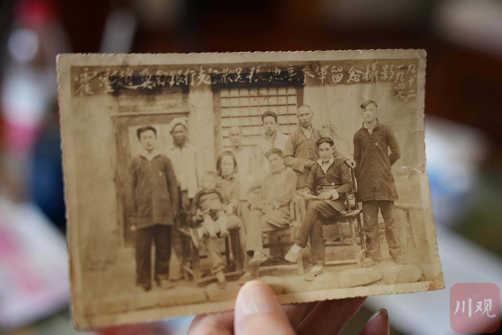张迪亭向记者展示他参军时的照片,照片中右二坐立者为张迪亭。