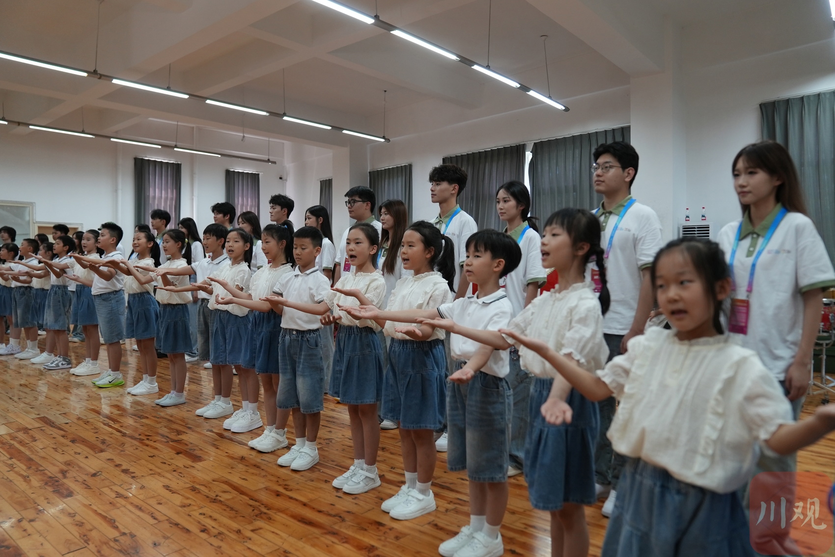 学生合唱团正在紧锣密鼓地排练成都世运会推广歌曲《逐梦》